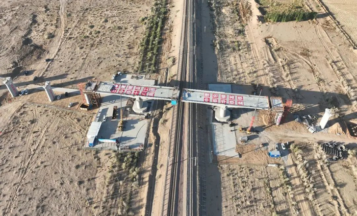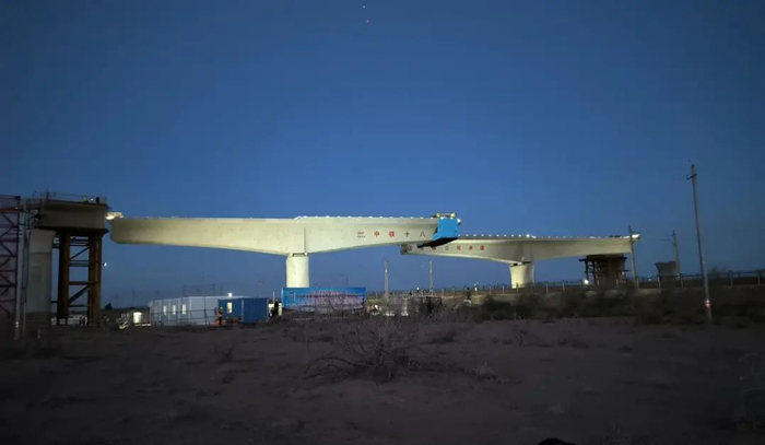 近日,包银高铁首座转体连续梁历时45分钟完成华丽转身。标志着由中铁十八局集团承建的包银高铁跨包兰铁路连续梁成功转体、实现对接,完成跨铁路营业线施工,为包银高铁如期开通奠定基础。