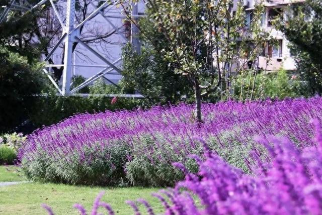 在位于临汾路1568号的彭浦四季公园里,鼠尾草在秋冬迎来花期,为静安的秋冬带来一抹浪漫神秘的紫色。