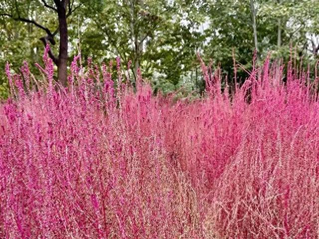 闸北公园里约240平方米的地肤草,春夏嫩绿,深秋渐变得娇艳如天上的红霞,正是秋冬里的一抹胭脂色。