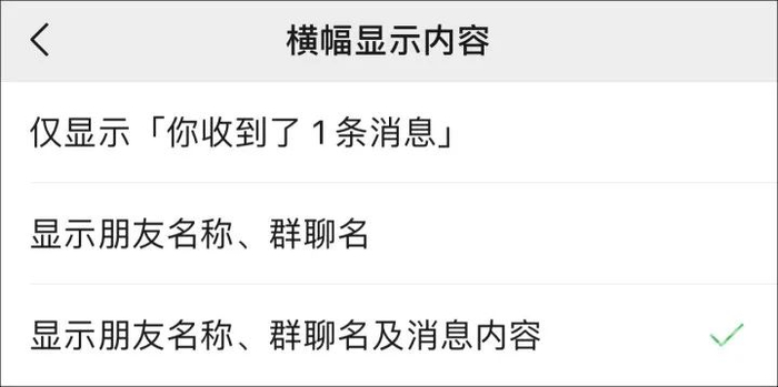 点击「我」-「设置」-「消息通知」,可以看到新增了「横幅显示内容」选项。