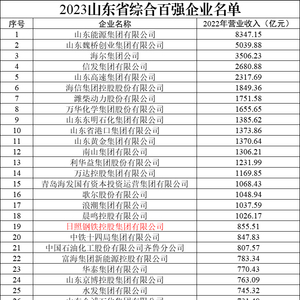 日前,山东省工信厅对2023山东省百强企业名单予以公示,其中2023山东省综合百强企业名单中共有8家钢企上榜,而2022年排名第五的山东钢铁集团有限公司却在今年的榜单中隐去了身影。这是继山钢集团跌出财富世界500强、中国企业500强以来的又一次爆冷。