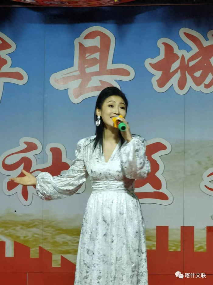 广东省文联文艺志愿者走进莎车县开展惠民文艺演出,国家一级演员张朝夕演唱《美丽中国》。