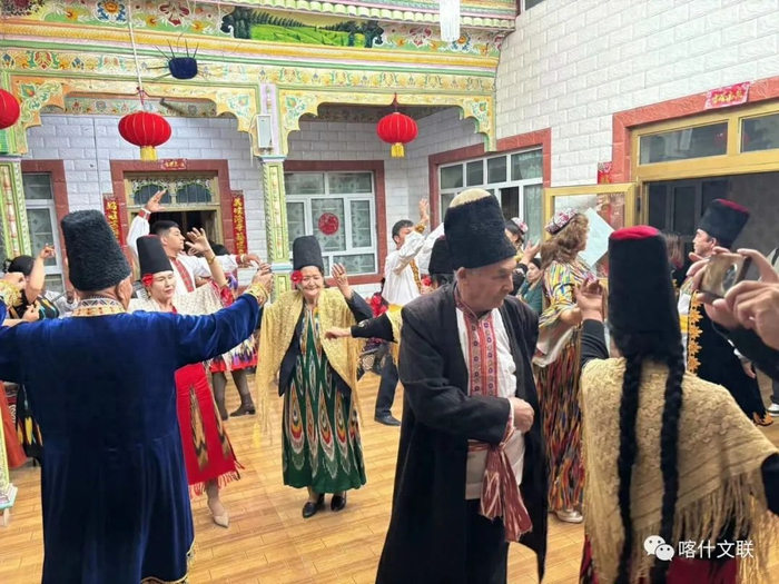 在莎车县喀群乡、孜热甫夏提塔吉克民族乡,调研组实地了解国家非物质文化遗产喀群赛乃姆、塔吉克族鹰舞的发展历史。走进喀群乡巴扎村文化大院,乐手们奏响热瓦普、都塔尔、手鼓等乐器,大家在欢快的旋律中跳起赛乃姆,现场其乐融融,热闹非凡。