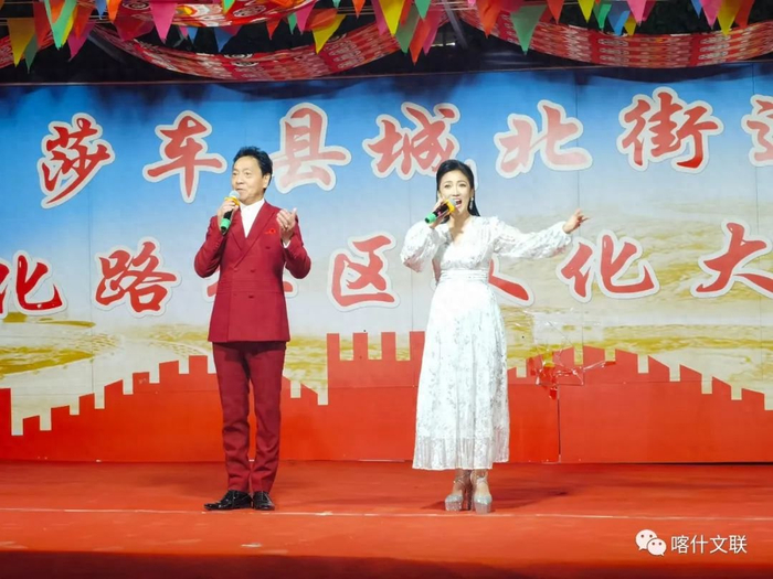 在莎车县城北街道文化路社区,由广东省文联和莎车县十二木卡姆歌舞团共同主办的文艺惠民演出在这里精彩上演,十二木卡姆片段《朱拉》、歌曲《春风十万里》《美丽中国》等丰富多彩的节目轮番上演,为当地居民奉上了一场精彩的文化大餐,现场掌声不断,气氛热烈。