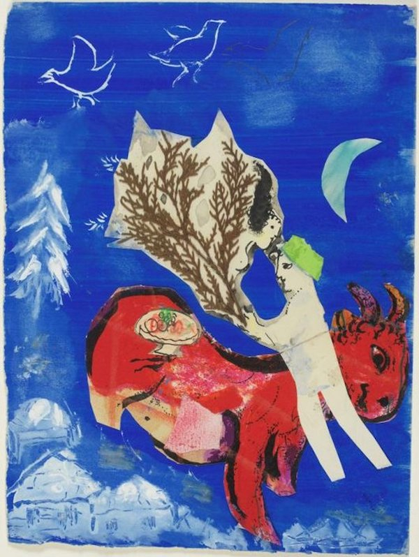 展览汇集了一组2022年入藏的作品,包括夏加尔127幅素描、5件陶瓷和7件雕塑,围绕三个主题:夏加尔在1945年为纽约芭蕾舞剧团《火鸟》剧目绘制的服装和舞台设计草稿;1962年为巴黎歌剧院天花板装饰创作的草稿和样本,20世纪50年代至70年代创作的陶瓷、拼贴画和雕塑作品。