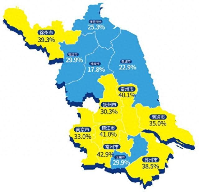 在感染地图中,常州、镇江、泰州、徐州、苏州、南通、南京、扬州8个城市的感染率均高于江苏省整体感染率,其中常州最高为42.9%。