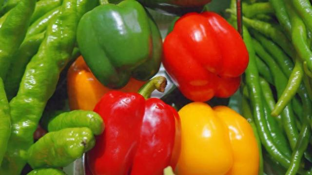 金黄的玉米、鲜艳的彩椒、翠绿水灵的茭白、黄瓜、秋葵……色彩明亮的蔬果,在秋天的世界里勾勒出一幅富有烟火气的画卷。