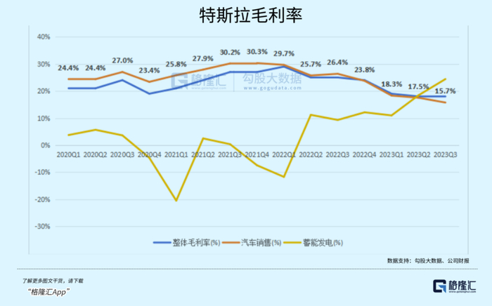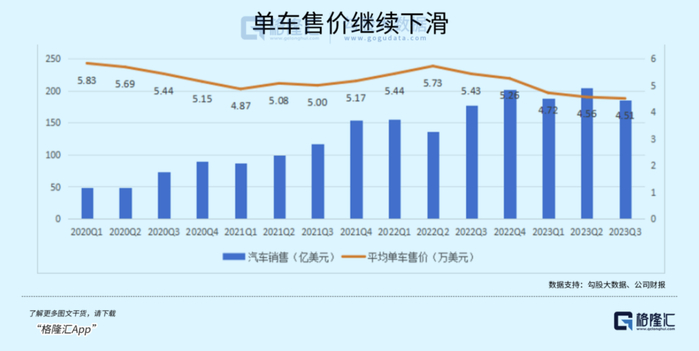 最核心的汽车销售毛利率环比上季度下滑了1.8%,尽管第三季度单车原材料成本降低了约2000美元,平均单车收入较去年同期还是下降了近17.31%。生产端能够提供技术降本的帮助也比较有限,单车摊销折旧成本相比上季度增加约400美元。