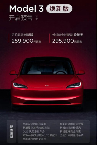 不过,改版Model 3并没有降价售卖,只是给予8000保险补贴,变相降价3.5%。对比来看,全新Model 3焕新版(后驱版)相比2022款后轮驱动版(售23.19万元)上涨了2.8万元。