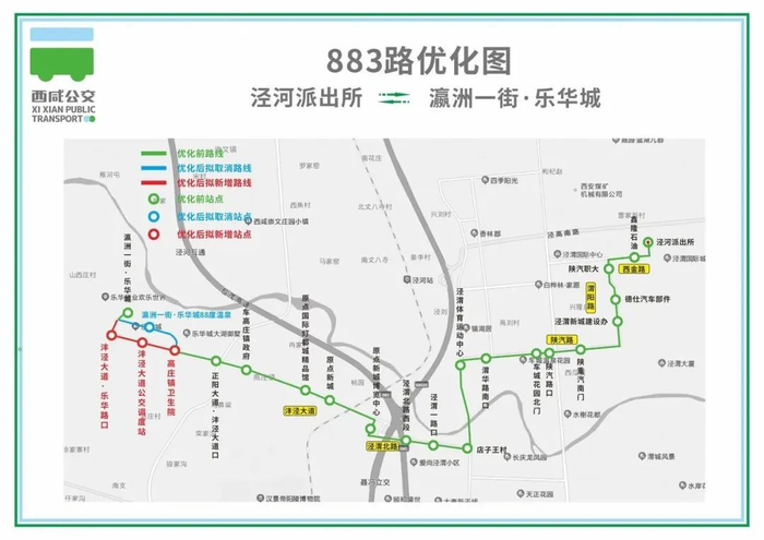 新增站点:沣泾大道·乐华路口、沣泾大道公交调度站、高庄镇卫生院。