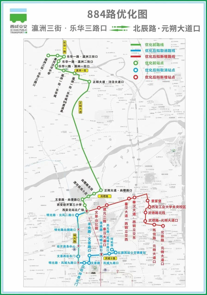 取消站点:明光路·秦汉大道口、明光路·元朔路口、经开政务服务中心、西安出口加工区、文景西区东门、明光路·凤城九路口、白桦林居北门、文景路·凤城九路口、文景路·凤城十路口、未央路·凤城十路口、开元路·凤城十路口、红旗西路公交调度站、河址西。