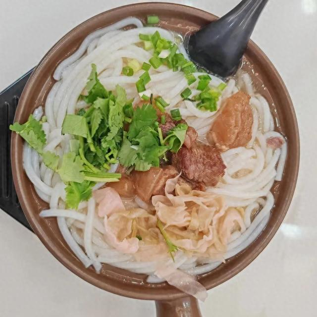 担心吃鱼吃不饱,再来一份带皮黄牛肉粉,在香酥黄牛肉和提鲜解腻泡酸菜的点缀下,白色的米粉已吸饱了牛骨浓汤变得弹性十足,哧溜一口,从胃爽到心里。