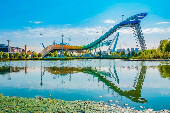 奥运冠军“同款”滑雪大跳台自然是必须打卡的。2022年冬天,谷爱凌和苏翊鸣等运动员在首钢滑雪大跳台创造奇迹。冬奥之后,这里将作为世界首例永久性保留和使用的滑雪大跳台场馆,规划中将有多种赛事及活动在此举办。大跳台可以说是“从火到冰的重生”,设计灵感来源于敦煌壁画中的飞天飘带,也因此得名“雪飞天”。