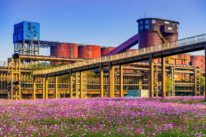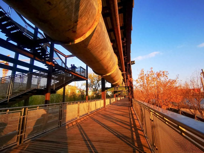 首钢空中步道全长2.6公里,西接永定河滨河休闲公园,贯穿首钢工业遗址公园和群明湖北岸,整体打造京西绿色生态健康廊道。立体廊道,惬意漫步,满园胜景,尽收眼底。