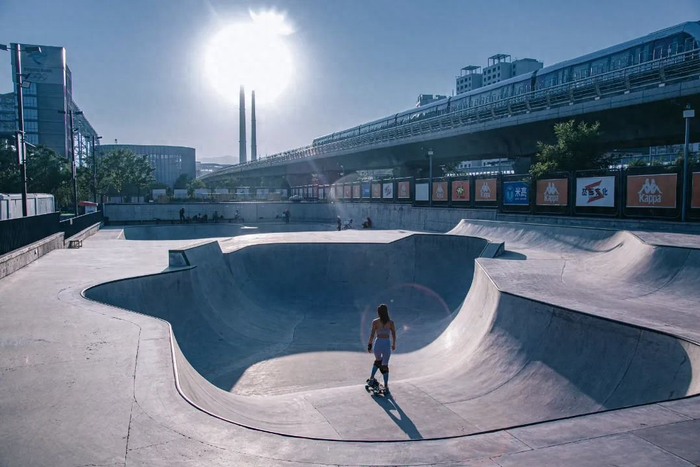 位于首钢园北区东北部的Kappa首钢极限公园,毗邻北京冬奥组委办公区,有着北京市最大的户外滑板、攀岩场,总占地面积1.79万平方米,其中攀岩场4261平方米、滑板场4386平方米、休闲区9266平方米。既满足国际级专业比赛项目,也面向滑板、攀岩爱好者乃至亲子儿童的非专业人员开放,为公众增加了更多的可参与性。