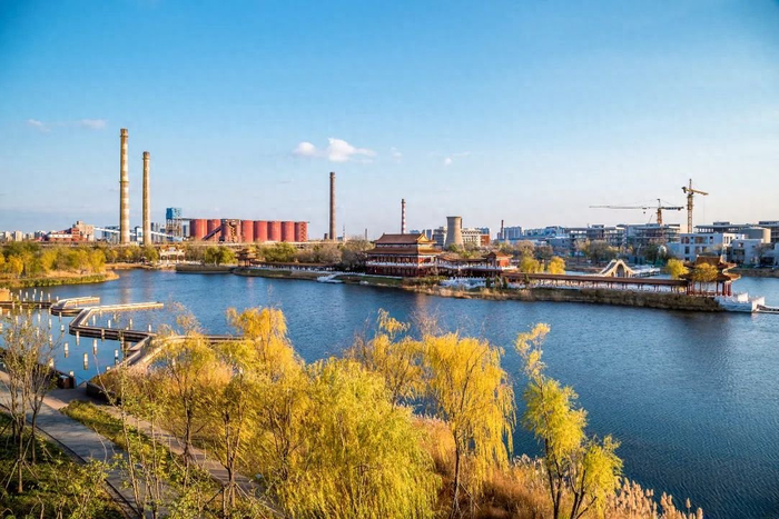 居于园区核心位置的群明湖,改自首钢高炉工业循环水池。每到冬季西伯利亚的绿头鸭、旅鸟针尾鸭还有中华沙丘鸭便迁徙而来,成群的野鸭在湖面上悠闲觅食,与山脉、高炉、亭榭、廊桥交相辉映,构成一幅绝美的“群鸟乐园图”。