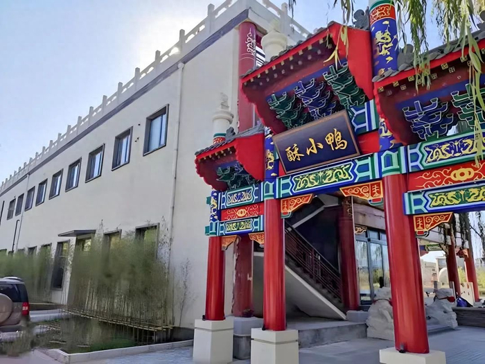 坐落于首钢园群明湖东南角,原址为首钢动力厂五泵站,属于群明湖古建筑群之一,酥小鸭餐厅三层露台可眺望2022北京冬奥滑雪大跳台。