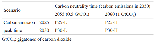 为了探讨碳达峰时间和碳中和时间差异对能源系统转型的影响,设计了以下4个转型情景(表1)。
