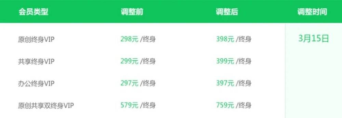 对于大型以及大众常用的软件来说,开通永久会员则会减少平台的收入,一次收费的价格总归是少与长期的各种订阅制价格。