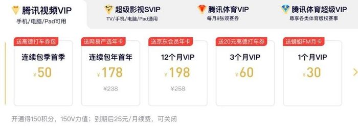 现在各大平台比较常见的会员类型是周卡、月卡、季卡以及年卡。