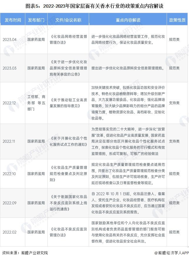 近年来,国务院、药监局、市监局等部门都印发了支持、规范香水等化妆品行业的发展政策,内容涉及规范香水等化妆品监督管理办法、支持加快香水等化妆品关键技术突破等: