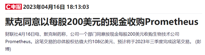 4月份,默沙东宣布以约108亿美元的价格收购生物科技公司Prometheus Biosciences。后者的主要候选药物“PRA023”是一种靶向肿瘤坏死因子TL1A的人源化单克隆抗体,靶点TL1A与多种肠道炎症和纤维化疾病相关。