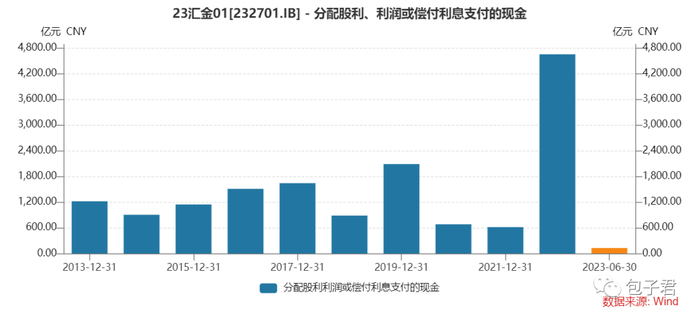 四大行们的分红是汇金的唯一的现金来源,但是这公司这两年账上现金还是不多。去年汇金用于分配股利和利润的现金支出达到4600亿,而用于偿还债务的现金支出也高达1200亿。去年几年汇金主要来降杠杆了,加之去年汇金将多年利润上缴财政用于支持经济复苏了,所以它手上的钱真不多。