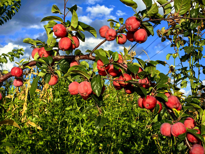 鲜红透亮、饱满圆润的苹果压满枝头