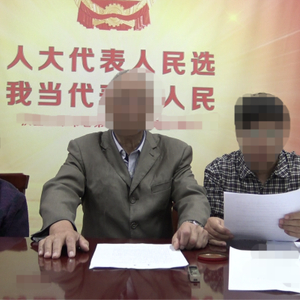 某老人在街道做录音录像遗嘱见证(中间为遗嘱人,右边两位为见证人)受访者提供