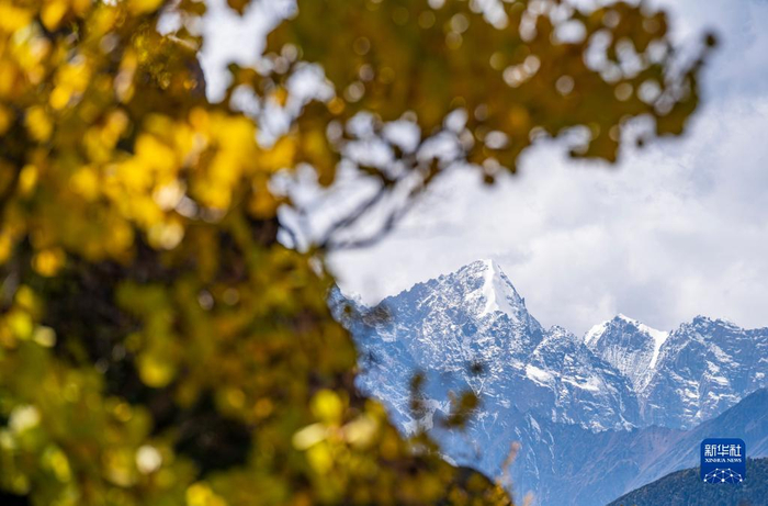 红拉山秋景(10月20日摄)。红拉山位于西藏昌都市芒康县境内,海拔约4448米,是214国道进入西藏后翻越的第一座高山。入秋以来,红拉山上秋意渐浓,色彩斑斓的树木与远方壮美的雪山同框,景色迷人。新华社记者 孙非 摄