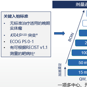 KRAS是肿瘤中突变最为广泛的癌基因之一,KRAS突变在胰腺癌、非小细胞肺癌和结直肠癌中最为常见。KRAS突变在肿瘤中的重要作用已经得到了广泛共识,但是长期以来,KRAS突变体被认为是一个难以靶向的靶点。目前有两款针对KRASG12C突变的药物获批上市,但是KRAS不仅有G12C突变,还有G12D、G12V以及G13D突变等,临床需求远远没有被满足。在所有KRASG12D突变中,以胰腺癌的突变发生率最高,其次为结直肠癌和非小细胞肺癌。靶向KRAS-G12D的药物在肿瘤治疗中拥有广阔的应用前景。该研究首次报告了HRS-4642在晚期KRASG12D突变实体瘤患者中进行的人体I期研究的剂量递增部分的初步结果。