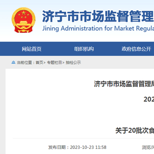 山东省济宁市市场监督管理局关于20批次食品不合格情况的通告(2023年第8号)