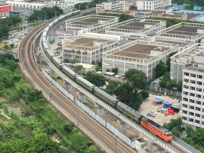 近日,广湛高铁江大联络线正式通车运营。至此,沙狮联络线、江大联络线(原名:新建广珠广茂联络线、广珠京广联络线)两条列车绕行通道均已实现开通,为加快广湛高铁正线建设创造了有利条件。根据施工设计,广湛高铁正线需借道普速广茂铁路,进入位于广州市中心城区的广州站,沙狮联络线、江大联络线正是实现这一目标的关键。