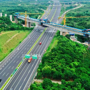成立了连续梁施工领导小组,编制跨高速公路安全专项施工方案,采取挂篮全封闭式安全防护网加设全兜底防护平台等安全防护措施,施工过程积极对接高速公路管理单位协调交通布控,持续优化施工方案,严格执行工序许可制度。针对菱形挂篮多工况的受力检算、合龙段的精确配重及温度控制等多个高难度工序,实行全方位、全过程盯控,确保连续梁实现安全顺利合龙。