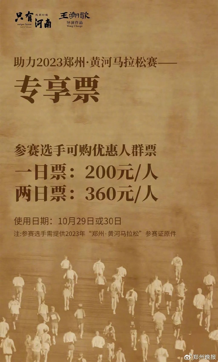 本周日,“郑州银行杯”2023郑州·黄河马拉松赛将鸣枪开赛。为了让选手们饱览“天地之中,华夏之源,功夫郑州”的自然景致和人文风光,在郑州市文化广电和旅游局的大力支持下,众多景区推出了郑马选手专属旅游福利。郑马赛事期间,选手凭本人参赛号码布,即可享受到专属优惠福利。