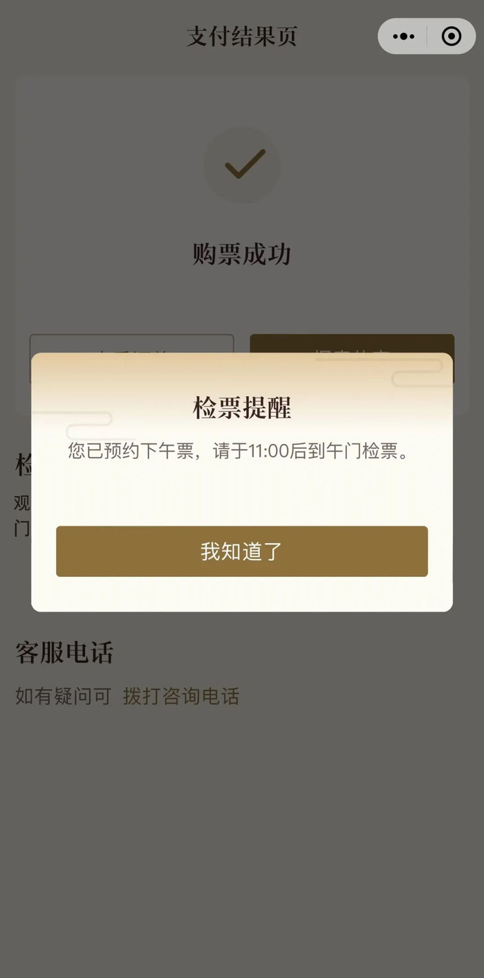 工作人员介绍,如果上午场观众在12点后检票,现场会提示“已过期”;下午场观众在11点前检票则会提示“未生效”。不论预约时间是上午还是下午,未能如期参观的观众都可以在参观当日20时前自主在小程序中申请退票,会记一次爽约,超过20时就不能退票了。