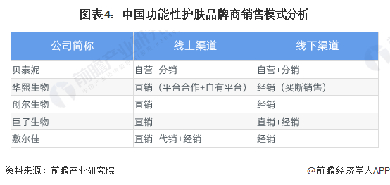 从销售模式来看,功能性护肤品行业代表性厂商大多在线上渠道采用直销模式,线下渠道则采取经销模式。