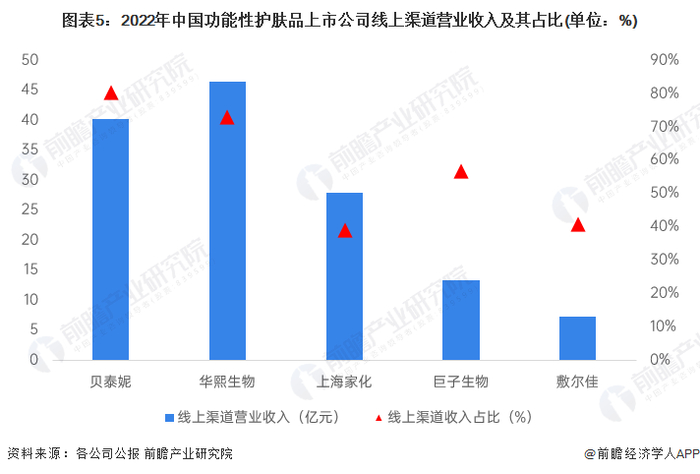 本文核心数据:中国功能性护肤品行业上市企业线上渠道营业收入及其占比