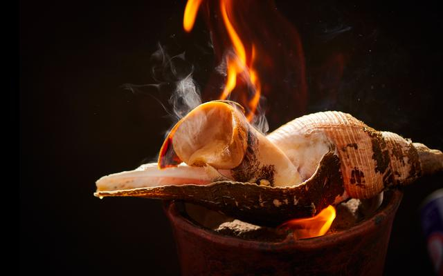 潮州卤水老鹅头选用澄海散养3年-5年的狮头鹅,用十六种香料每天新鲜卤制六个小时以上。经典菜品炭烤大响螺令人惊艳,响螺非常稀少,因为只能野生,无法养殖,先用白酒去腥,加入火腿、葱姜烧制一个半小时,浓郁软糯。