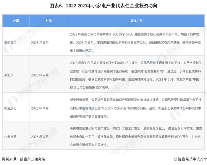 中国小家电产业代表性企业投资动向