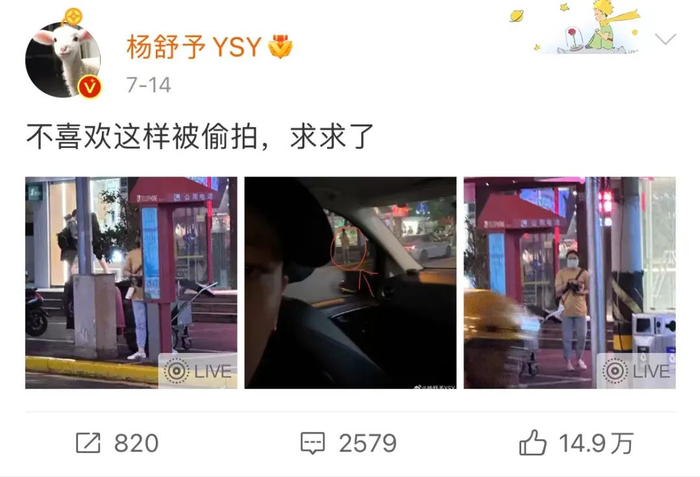 而在今年7月,杨舒予直接怒怼,“不喜欢这样被偷拍,求求了 ”“谁这么有钱,买点衣服不好吗?”