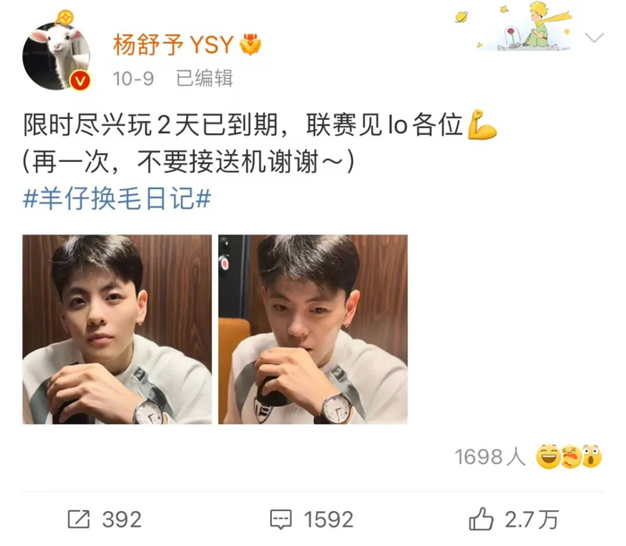 10月24日,话题#杨舒予再发文拒绝粉丝接机#冲上热搜。