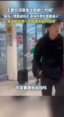 数日前,乒乓球运动员王楚钦在机场怒怼跟拍者的视频也在网上热传。10月14日深夜,王楚钦发表声明,希望抵制“代拍”和长时间跟拍等行为。他表示:“于赛场上,我是运动员;在赛场外,我也是普通人,希望大家能尊重彼此的隐私,保持距离,给我一些喘息的私人空间”。