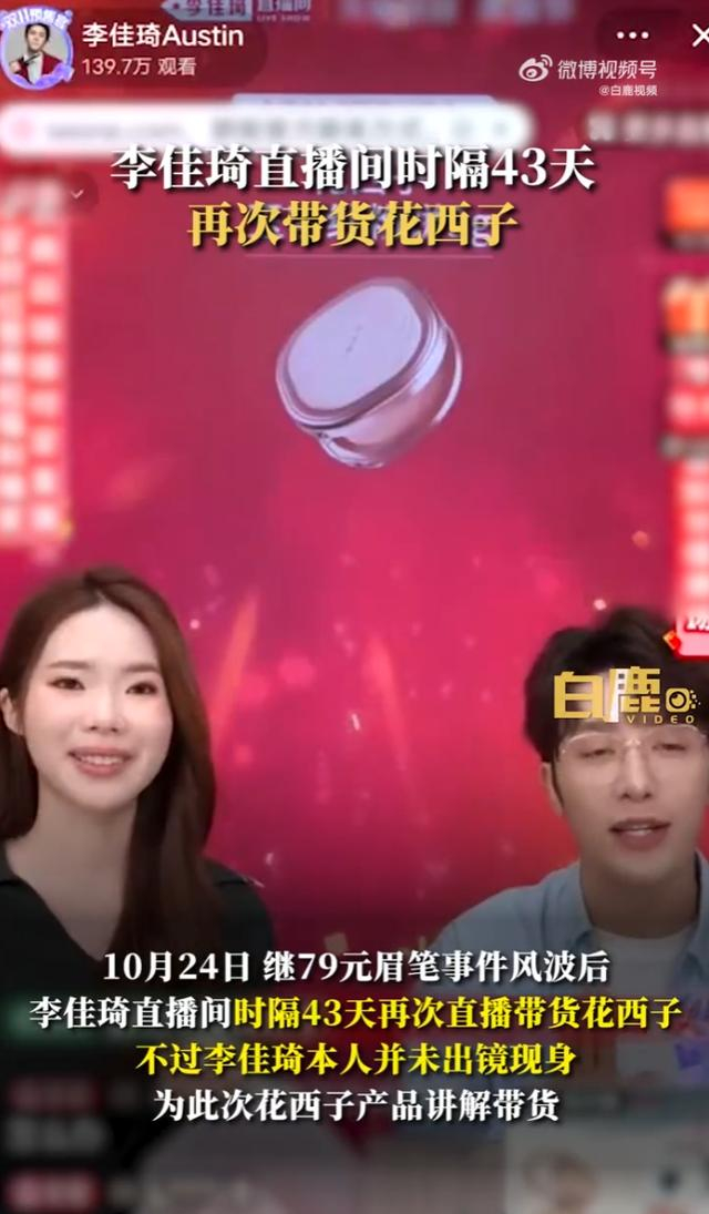 10月24日,#李佳琦直播间时隔43天再次带货花西子#的话题登上热搜第一。