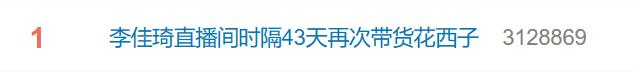 热搜第一!时隔43天,李佳琦直播间再次带货花西子……