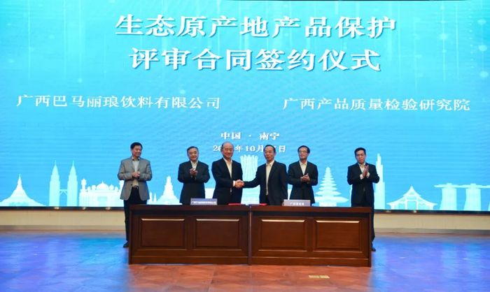 本次活动中,广西合天宝龙食品有限公司、广西巴马丽琅饮料有限公司分别与广西质检院签订了生态原产地产品保护评审合同。