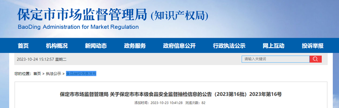 河北省保定市市场监督管理局公布113批次食品抽检信息