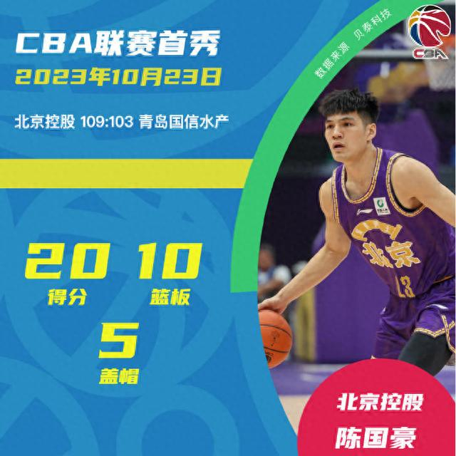 昨晚(10月23日),在北控对战青岛的比赛中,陈国豪身披北控球衣在国家体育馆完成自己的CBA首秀,拿下20分10篮板5盖帽2抢断的数据。这样,他成为了CBA史上首位首秀砍下20+10的选秀球员,这样的职业赛场初亮相可以用完美来形容。对近40分钟的上场时间、下半场打满,陈国豪表示自己也是“没想到”,“只要留在场上,就尽最大努力。作为新秀,闵指导能给这么长时间,是对我的信任。”陈国豪说。