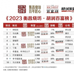 2023胡润百富榜:首富财富缩水50亿,马云掉到第十位,富豪的钱也变少了