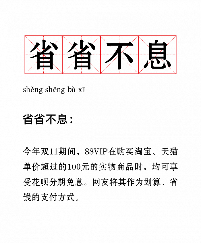 值得注意的是,今年88VIP还可享额外的福利:在购买单价超100元的淘宝及天猫实物商品,可使用最多24期的花呗分期免息。直接省掉利息,买大件商品非常划算。